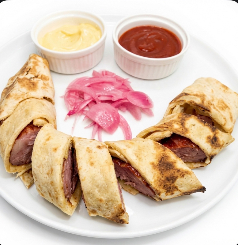 Sausage in homemade tortilla